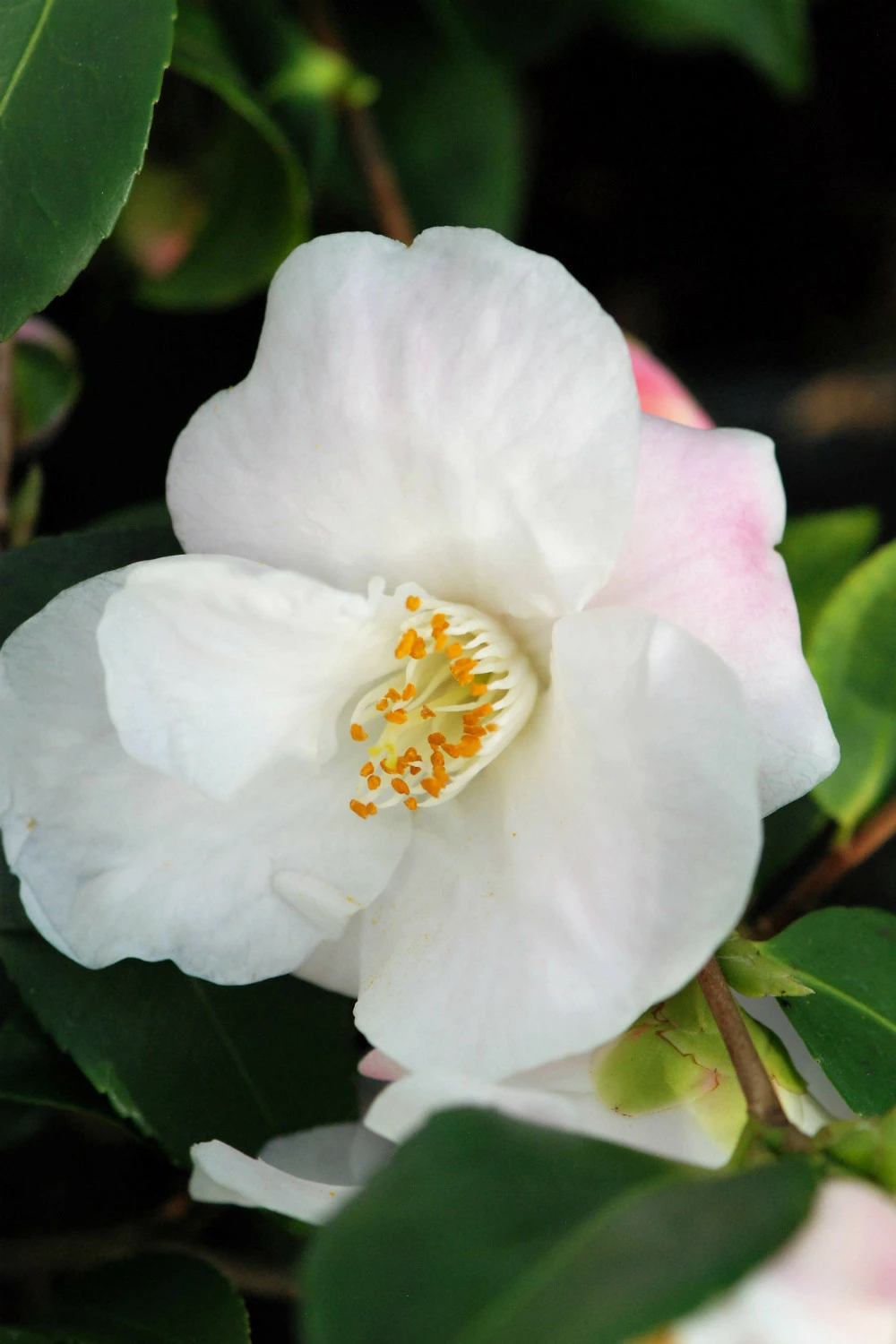 sa deuxième particularité en effet est de faire partie des camélias les plus odorants. Un parfum à savourer lors de la floraison. De très belles petites fleurs blanches avec quelques reflets roses apparaissent dès la fin de l’hiver.