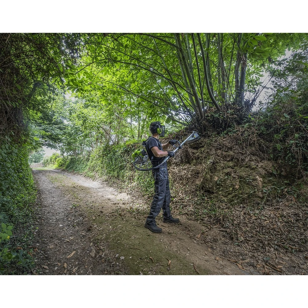 – confort d’utilisation : équipée d’un harnais rembourré et ajustable pour un confort maximal. La répartition du poids sur le dos de l’utilisateur permet également de réduire la fatigue et les douleurs liées à l’utilisation d’une débroussailleuse traditionnelle. Avec un poids de seulement 8,4 kg, elle est également facile à manipuler et à utiliser pendant de longues périodes sans fatigue excessive.