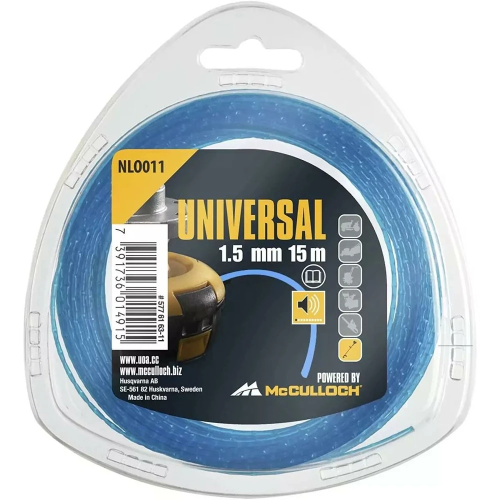 Ligne de coupe universal – accessoire d’origine de qualité mcculloch éprouvée : le fil de nylon universal est idéal pour tailler le gazon et les broussailles en toute tranquillité. Grâce à une technologie brevetée, les pousses, les chardons et même l’herbe dure sont coupés proprement et, surtout, sans bruit. Le fil de coupe est en nylon résistant et durable.fil de coupe-herbe en nylon 1.5mm x 15m nlo011technologie brevetée : contrairement aux fils standard, le fil de nylon universal coupe particulièrement silencieusementqualité mcculloch : la ligne de fauchage coupe l’herbe et les broussailles avec une précision maximale et assure une coupe nettedurabilité : le fil en nylon est résistant à la déchirure et peut être utilisé pendant longtempsfil de coupe de haute qualité : le fil a une longueur de 15 m