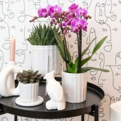 Cette plante succulente n’est pas difficile à entretenir, ce n’est qu’en été lorsqu’elle fleurit qu’elle a besoin de plus d’eau. La plante aime les endroits lumineux, mais préfère éviter la lumière du soleil intense en après-midi. Laissez bien sécher le terreau entre les arrosages. En hiver, la plante n’a pratiquement pas besoin d’eau et le terreau doit rester sec. La plante est toxique. Ne vous inquiétez pas si les feuilles jaunissent, cela fait partie du processus naturel de la plante qui fera pousser de nouvelles feuilles par la suite. A partir d’octobre la plante perd toutes ses feuilles, mais pas de panique ! En mars, de nouvelles feuilles pousseront.ce set comprend 2 plantes mesurant à la livraison entre 25 et 45cm (hauteur du pot incluse dans la mesure). Le diamètre du pot de transport est de 13 cm.