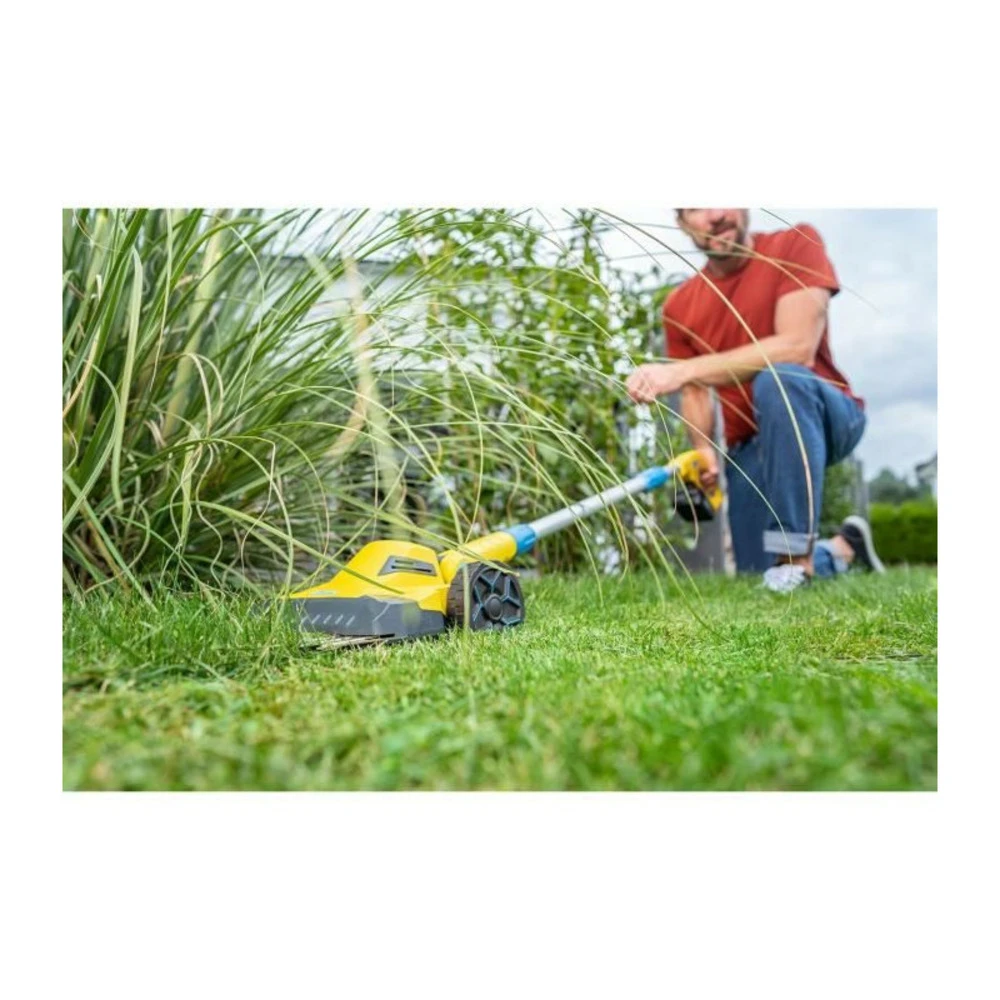 Cette tondeuse a gazon et a bordures alimentée par batterie (non fournie) est le complément idéal de tout robot de tonte. Grâce a son design compact, l’appareil coupe facilement le long des bordures et est parfait pour couper les contours de la pelouse.